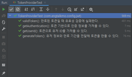 다음으로 TokenProvider 클래스를 테스트하는 클래스를 생성합니다.