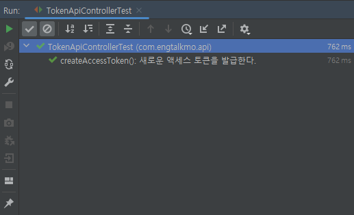 JWT 기능 테스트가 완료되었다면 TokenApiController를 통해 Access Token이 정상적으로 재발급 되는지 테스트하겠습니다. TokenApiController 클래스를 테스트하는 클래스를 생성합니다.