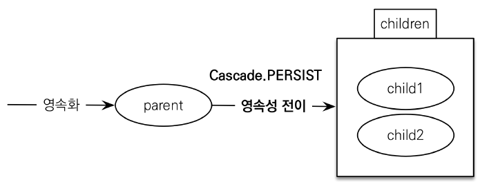 em.persist(parent); // parent만 영속화하면 child도 같이 영속화된다.