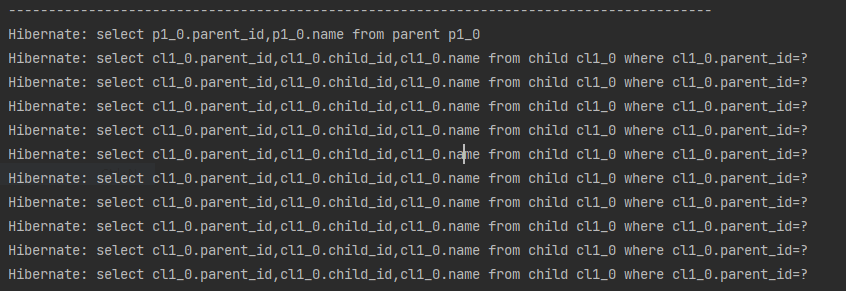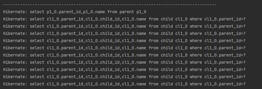 JpaRepository에 정의된 인터페이스 메서드를 실행해 보면 JPA는 메서드를 분석하여 JPQL을 생성하여 실행하게 됩니다. JPQL은 SQL을 추상화한 객체지향 쿼리 언어로 특정 SQL에 종속되지 않고 엔티티 객체와 필드 이름을 가지고 쿼리를 생성합니다. 이러한 이유로 JPQL은 findAll() 메서드를 실행할 때 해당 엔티티를 조회하는 select * from Parent 쿼리만 실행하게 됩니다. JPQL 입장에서 연관관계를 무시하고 해당 엔티티를 기준으로 쿼리를 조회하기 때문입니다.