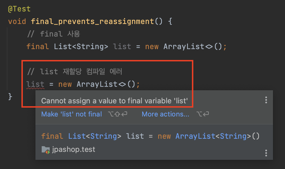 즉, final은 재할당은 불가능 하나