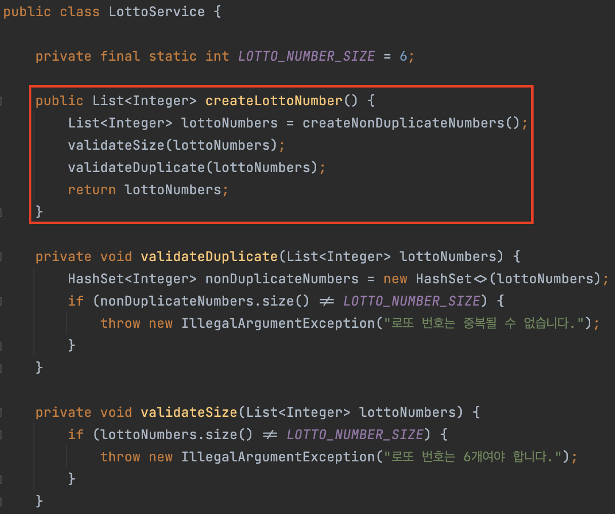 또한 로또 번호 생성과 번호 검증 등 너무 많은 책임을 가지고 있으며 이로 인해 코드의 관리와 이해가 어려워집니다.
